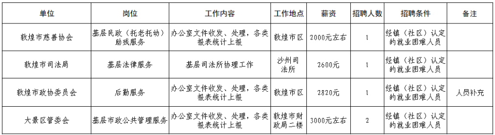2022年甘肅敦煌市公益性崗位招聘公告 |