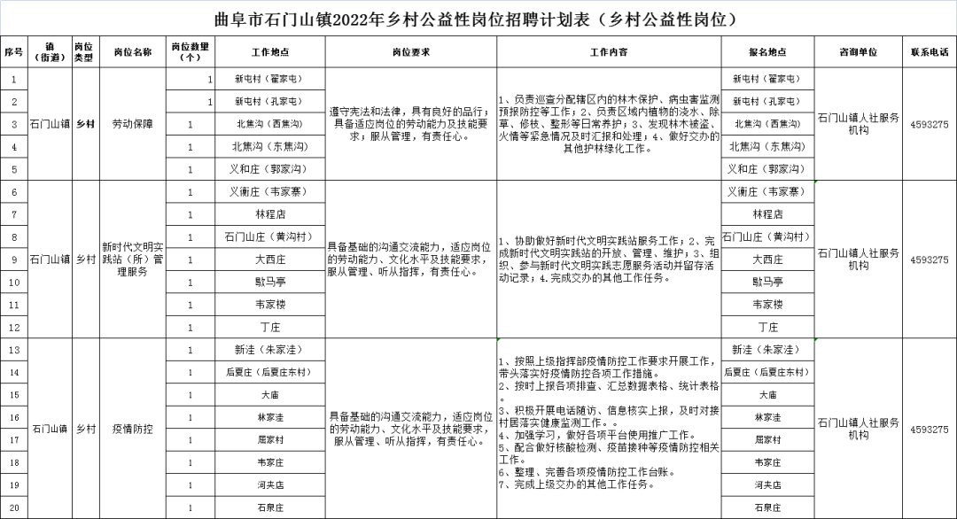 2022年山東濟寧曲阜市石門山鎮(zhèn)城鄉(xiāng)公益性崗位招聘20人公告 |