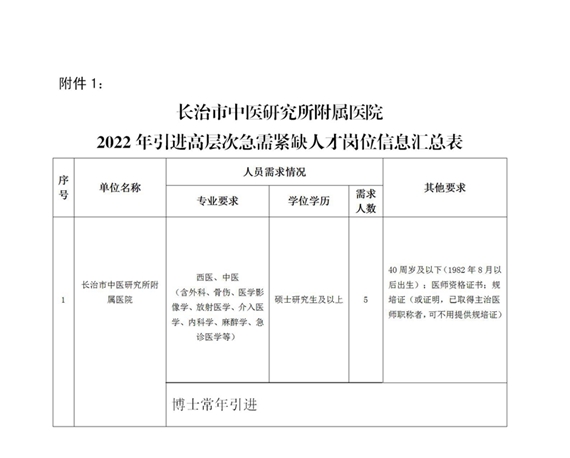2022年山西長治市中醫(yī)研究所附屬醫(yī)院引進(jìn)高層次急需緊缺人才公告 |