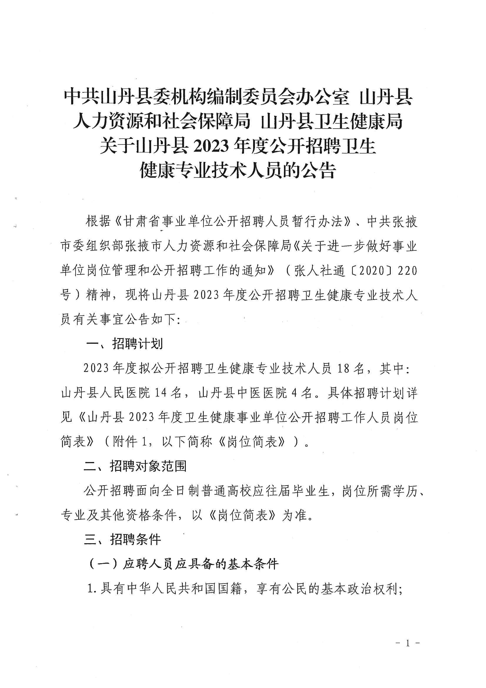 2023年甘肅張掖市山丹縣招聘衛(wèi)生健康專業(yè)技術(shù)人員公告 |